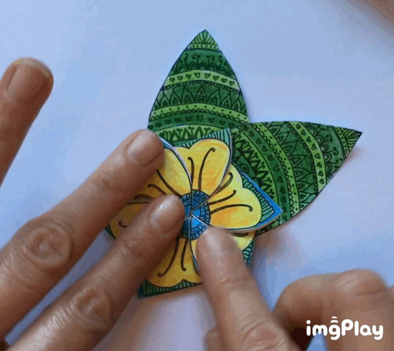 4. Fold the petals down overlapping each other (there are two different designs depending on which way you fold the petals).