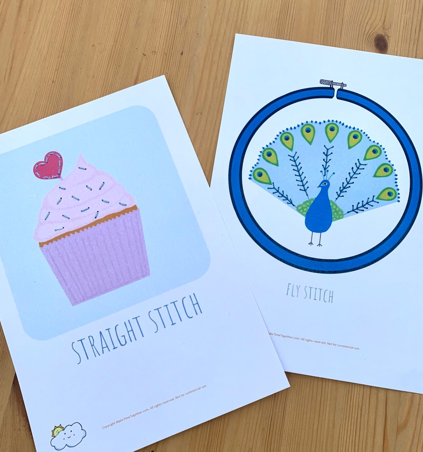 Recently I added the first two sets of printable embroidery stitch guides on my blog. These new cards can be used alongside the guides as a fun, easy way to teach new embroidery stitches to children.